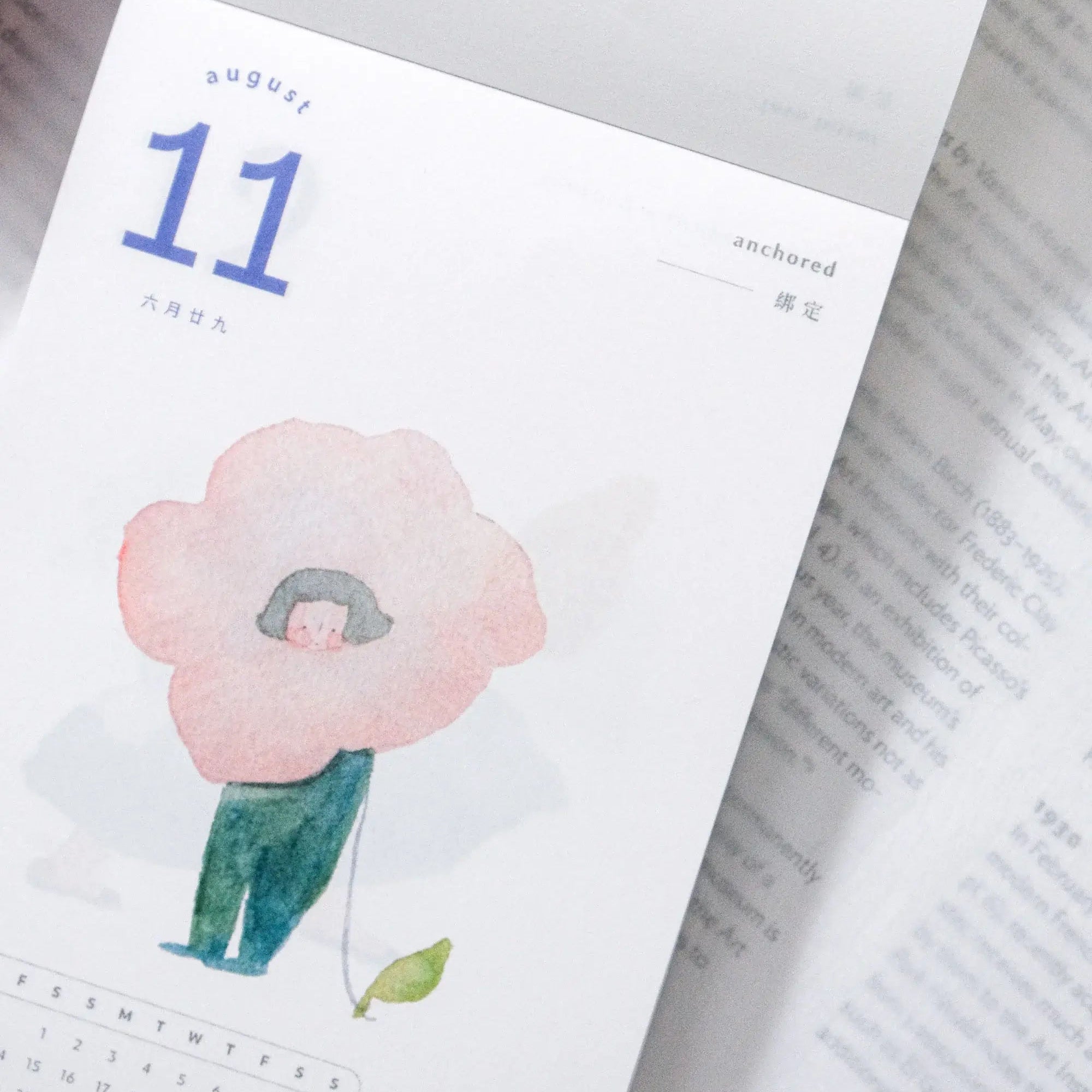 This elegant calendar features a selection of 365 signature girl characters and inspiring phrase in English and Chinese. Each day serves as a reminder to embrace daily changes, and foster a healthier mindset.