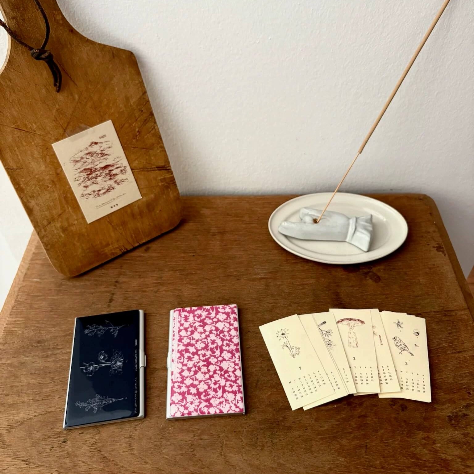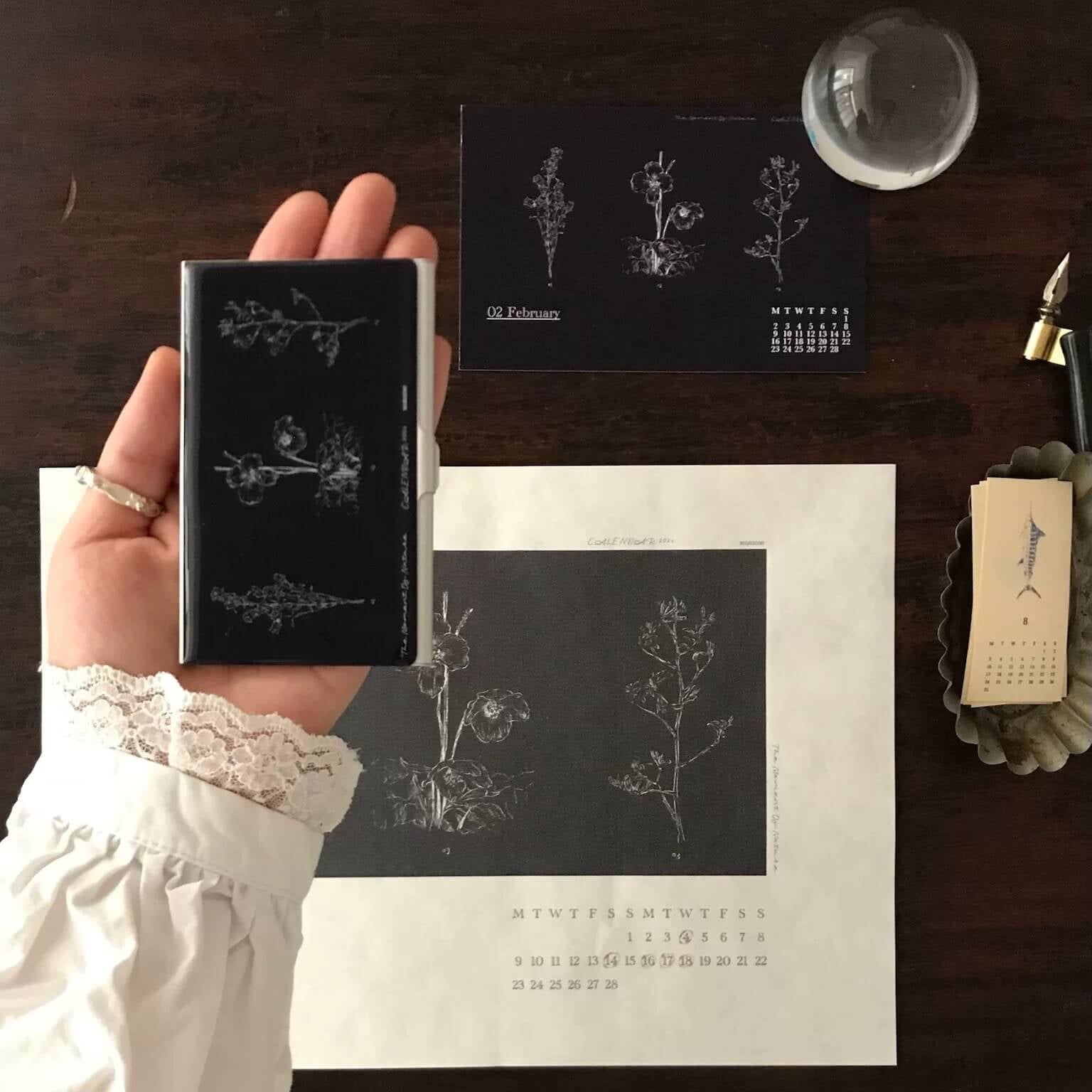 This 12-month mini calendar features delicate pencil-style illustrations in calming blue and green tones, paired with timeless typography. The vintage-inspired artwork and tea-coloured paper bring a gentle warmth, making each page feel like a small keepsake.