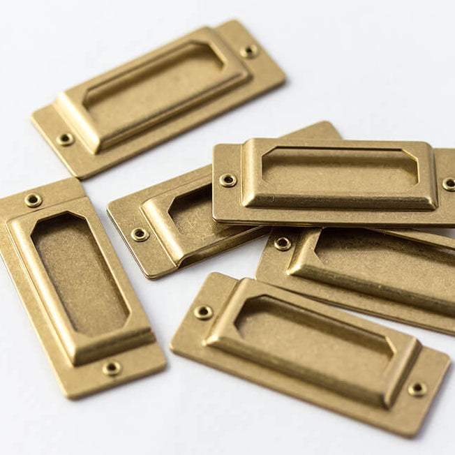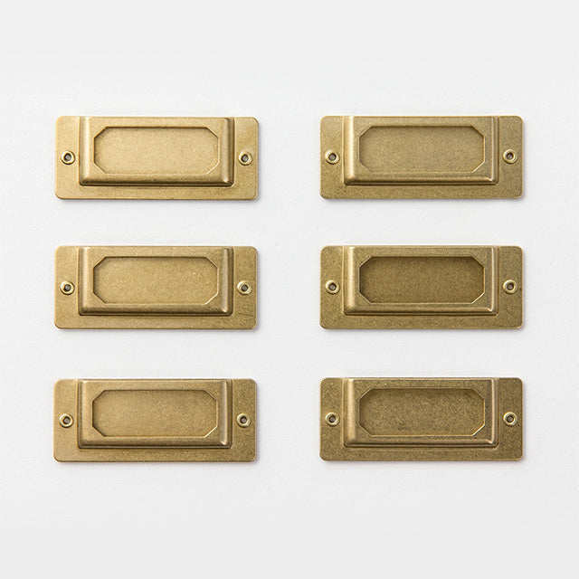 Inspired by the brass nameplates once found on the drawers of old printing factories, these label plates bring a touch of timeless charm to your notebooks, boxes, or cases.
