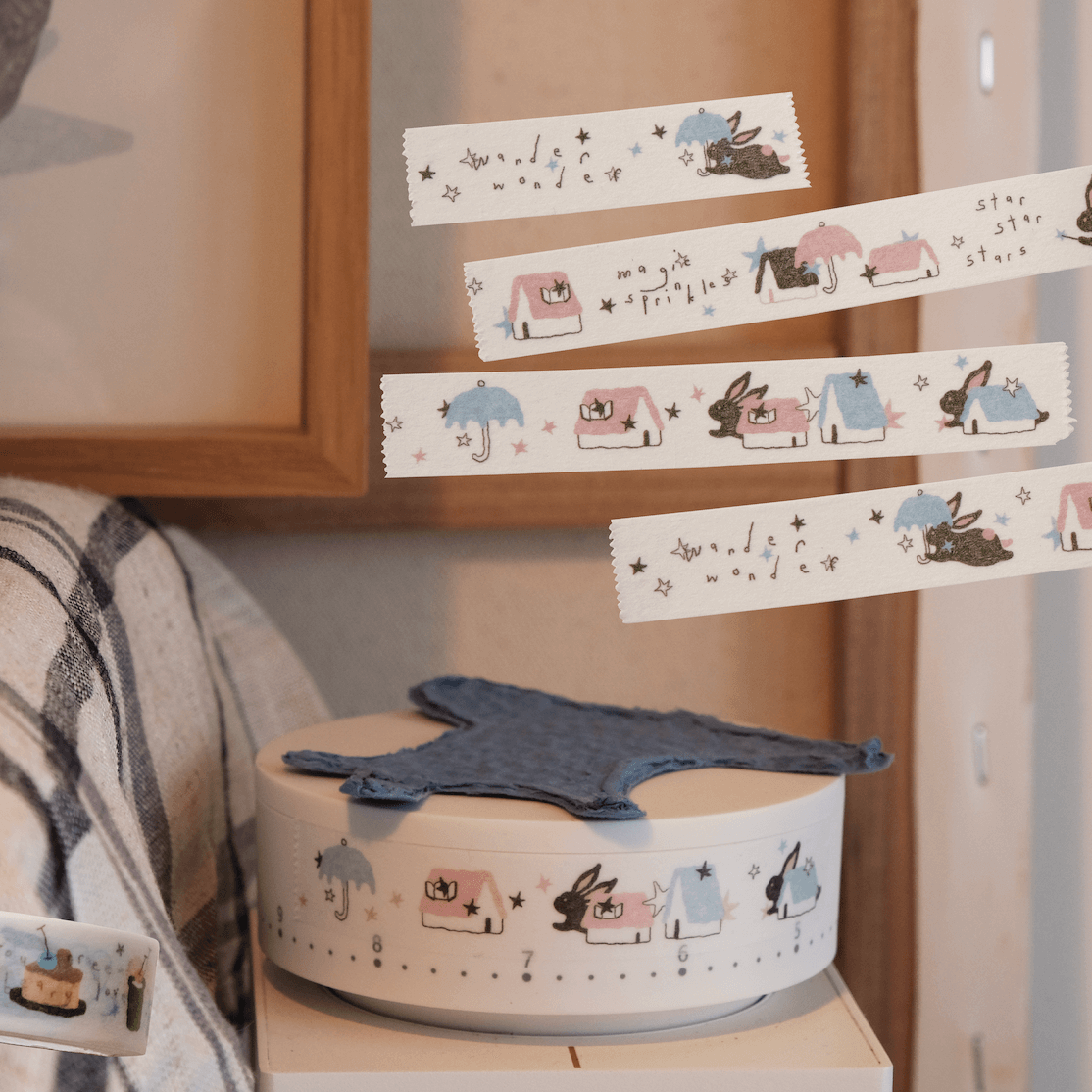 Designed by Malaysian artist bighands, this washi tape series captures soft, wandering moments such as tiny stars, quiet thoughts, sweet bears, and little scenes that feel like they came from a daydream. Designs like Beary Cherry and Magic Sprinkles add a playful warmth that feels both nostalgic and comforting.