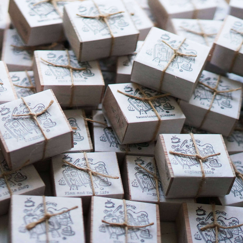 The stamps are made of industrial high grade red rubber with the finest details. It is mounted by hand on re-purposed aged wood or on raw wood bark (limited), hand-picked from various sources from old furnitures to jungle excursions! As all stamps are assembled, cut, sanded by hand, size and shape may vary slightly. Wood material will differ depending on what the forest elves bring!
