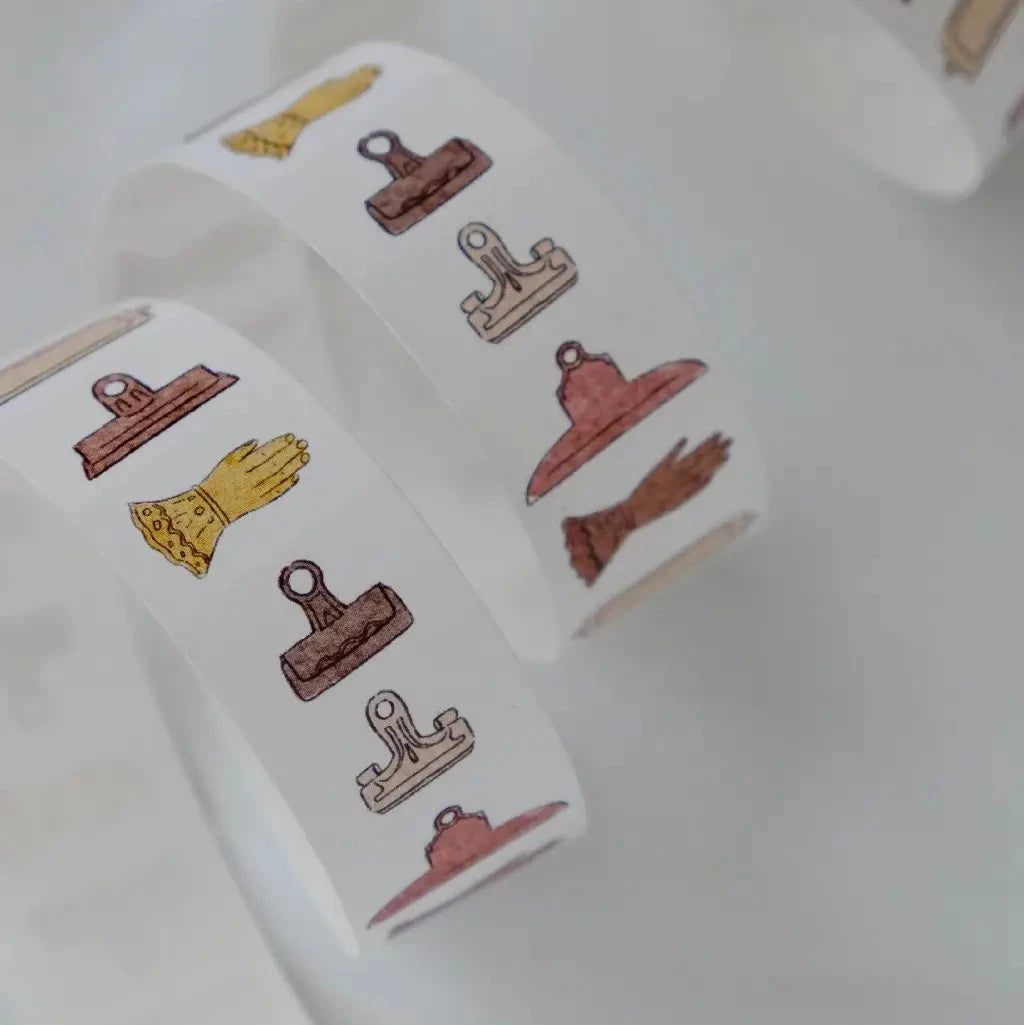 This mini sticker roll the charm of analogue days, featuring illustrations of seven different vintage-inspired clips, hand clips, and brass tag index boards. A charming tribute to the way we gather loose papers, photos, tickets, and tiny memories scattered across our journaling desks. Perfect as a delightful addition to any labelling enthusiast’s toolkit.