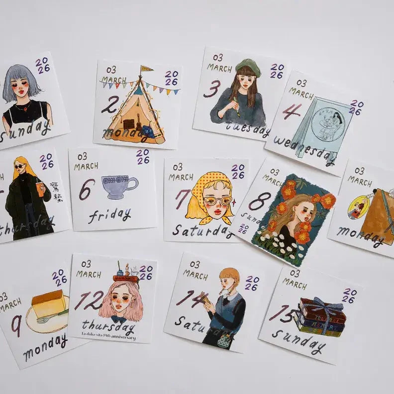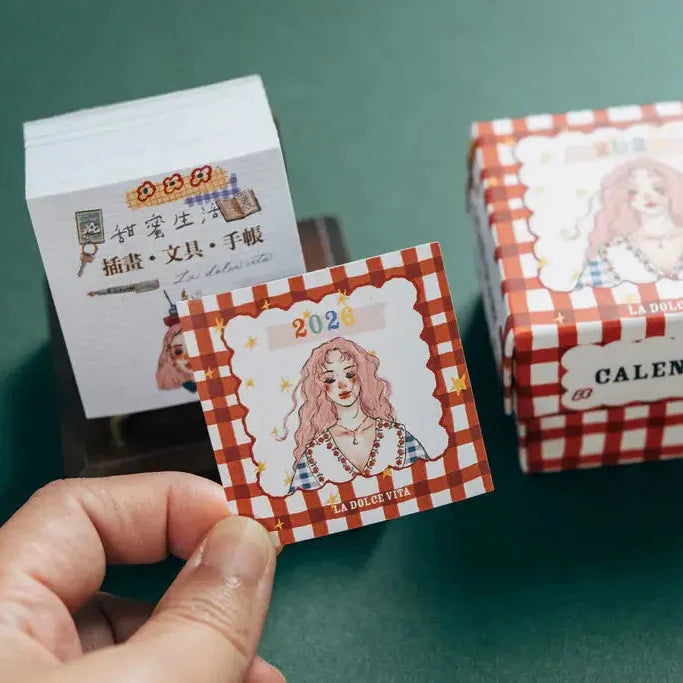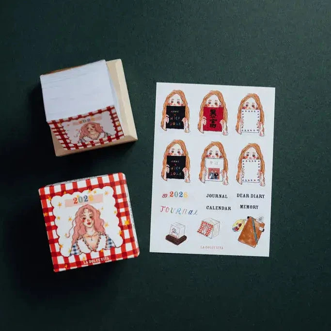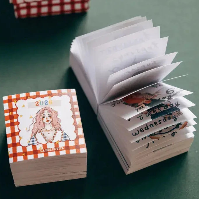 This mini block calendar by La Dolce Vita embraces the joy of today, celebrating it as a moment of gratitude and wonder. Each illustrated page features the whimsical girl illustration, a gentle companion reminding us to cherish the little things, day by day.