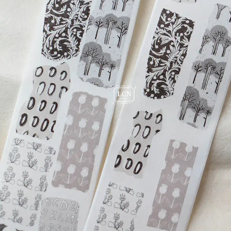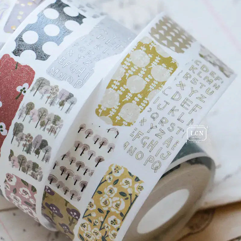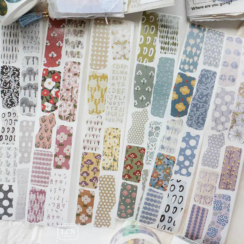 This washi tape is a celebration of patterns, fragments, and quiet moments on paper. Inspired by collected scraps, handwritten notes, and printed textures, this die-cut washi tape brings together a rich mix of shapes that feel like cut-outs from a well-loved notebook.