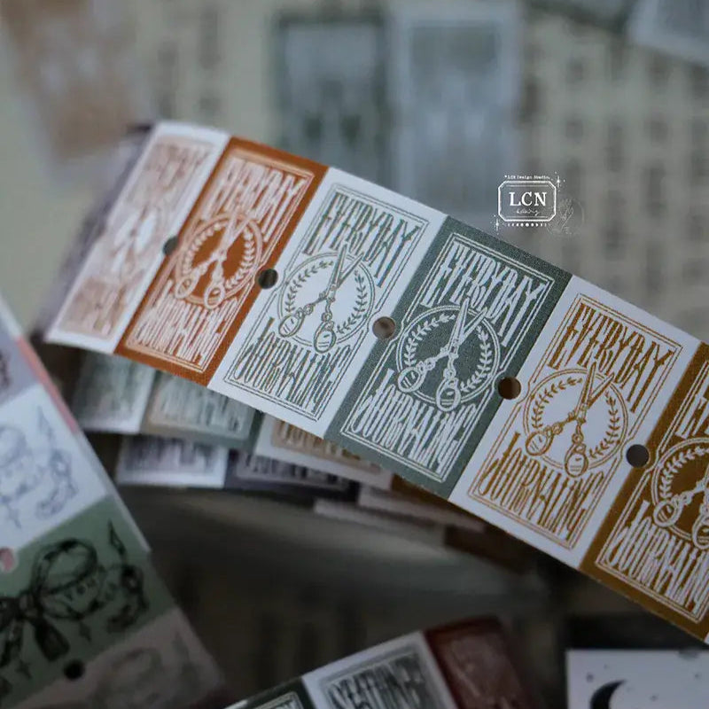 Whether layered, lined up, or used sparingly, these stickers add visual structure and character to journals, collage works, gift wrapping, and packaging. Used on their own or paired with stamps, washi tapes, and paper ephemera, they bring a subtle graphic presence without overwhelming the composition.