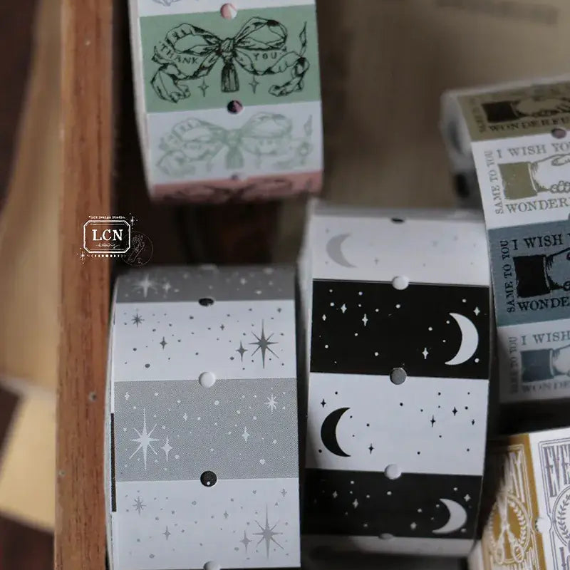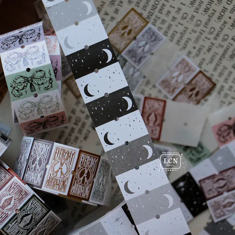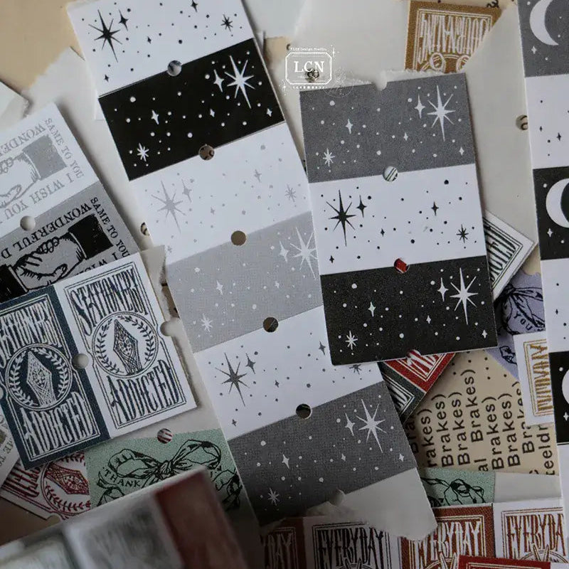 Whether layered, lined up, or used sparingly, these stickers add visual structure and character to journals, collage works, gift wrapping, and packaging. Used on their own or paired with stamps, washi tapes, and paper ephemera, they bring a subtle graphic presence without overwhelming the composition.