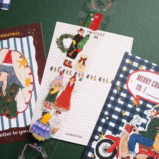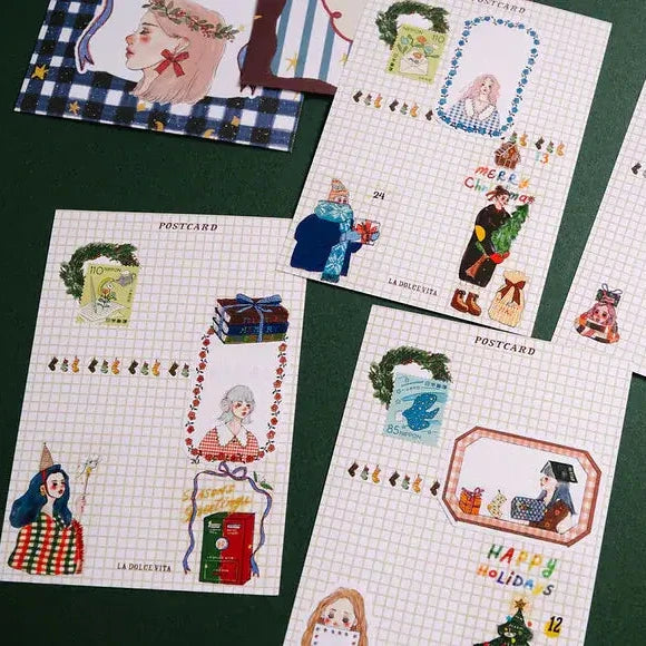 This postcard celebrates the magic of the Christmas season, filled with festive cheer and a touch of nostalgia. Perfect for sending warm wishes, decorating your journal, or adding a cozy holiday mood to your gift wrapping.