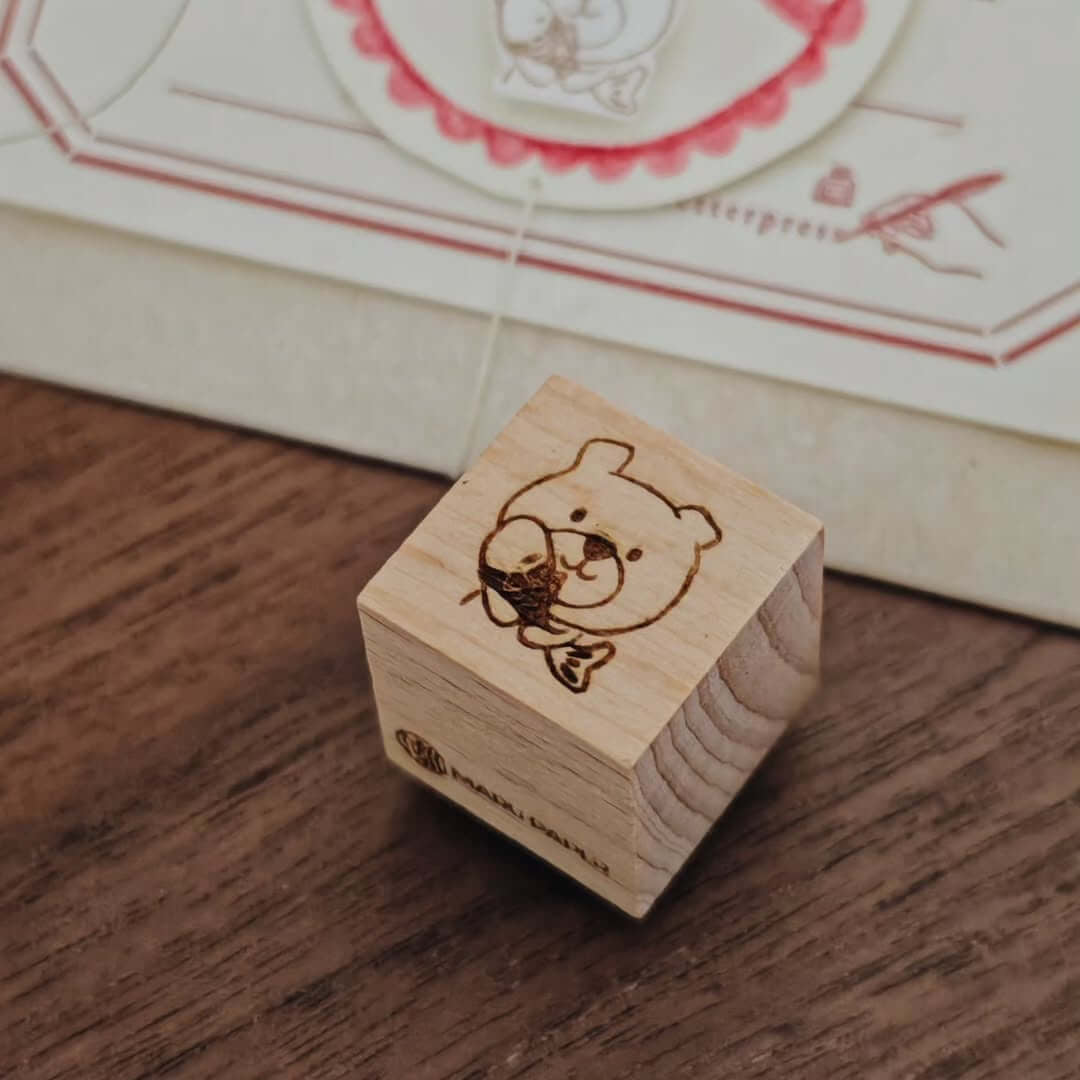 This rubber stamp features maru paper’s iconic teddy bear holding a cheerful fish, a gentle symbol of abundance, joy, and everyday blessings. Through this simple illustration, the designer shares a wish to notice and appreciate the small, good moments that quietly fill our daily lives.