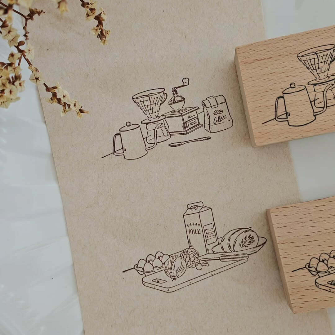 Inspired by the quiet rituals that shape our everyday lives, each rubber stamp design is drawn from her daily routines. It is a freshly brewed cup of coffee, a lovingly prepared meal, and the small, familiar moments that bring comfort and joy.