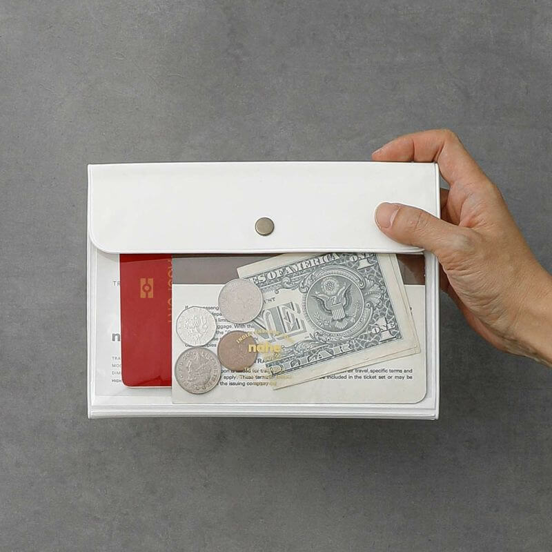 Stay organized on the go with the nähe Travel Organizer, designed to keep your essentials secure and easily accessible. Crafted from water and dirt-resistant PVC, this compact yet versatile case features multiple pockets, allowing you to store your your passport, tickets, cards, receipts, and even coins with its handy zipper pocket. Beyond travel, it also works well as a bankbook holder or a maternal and child health handbook case, making it a practical companion for various needs.