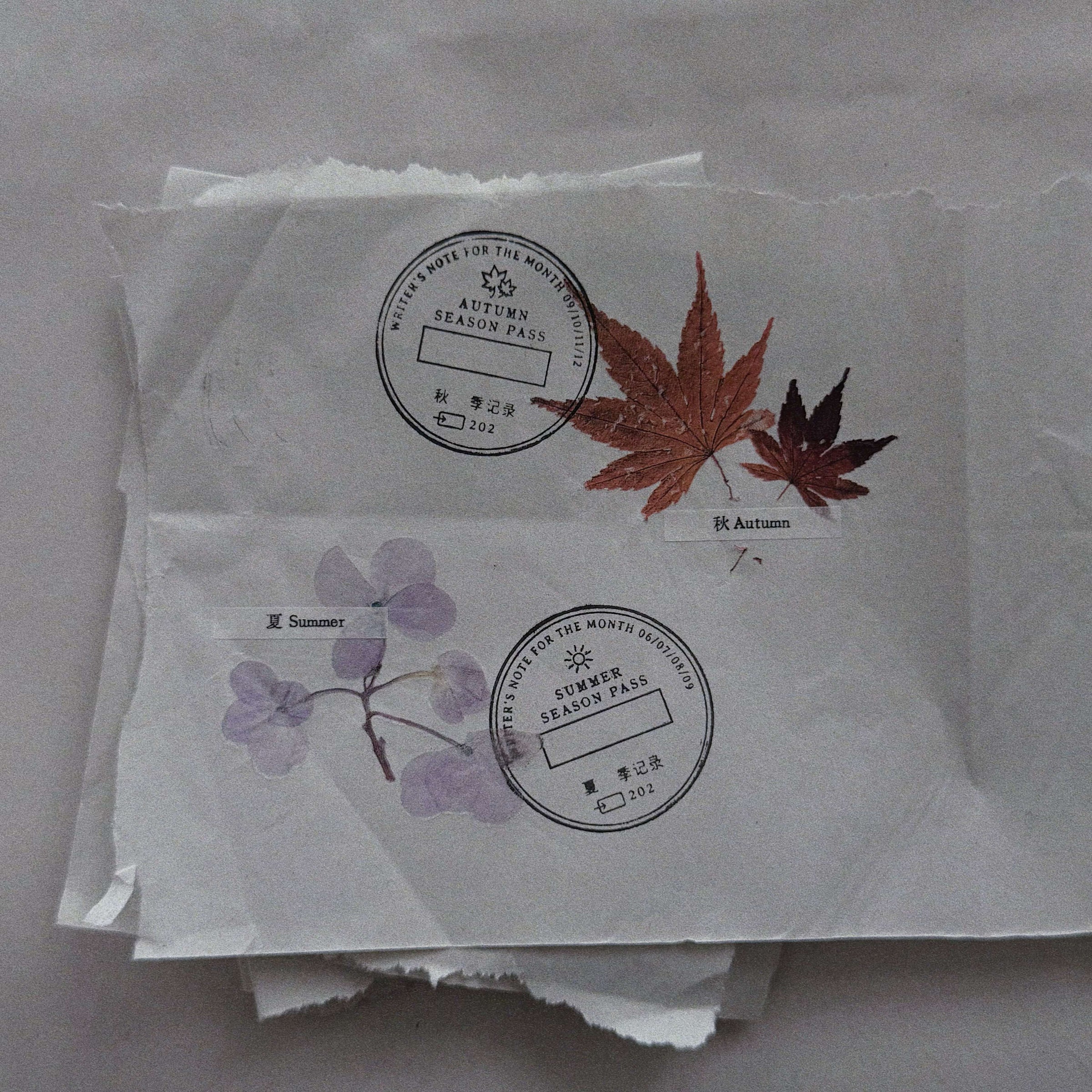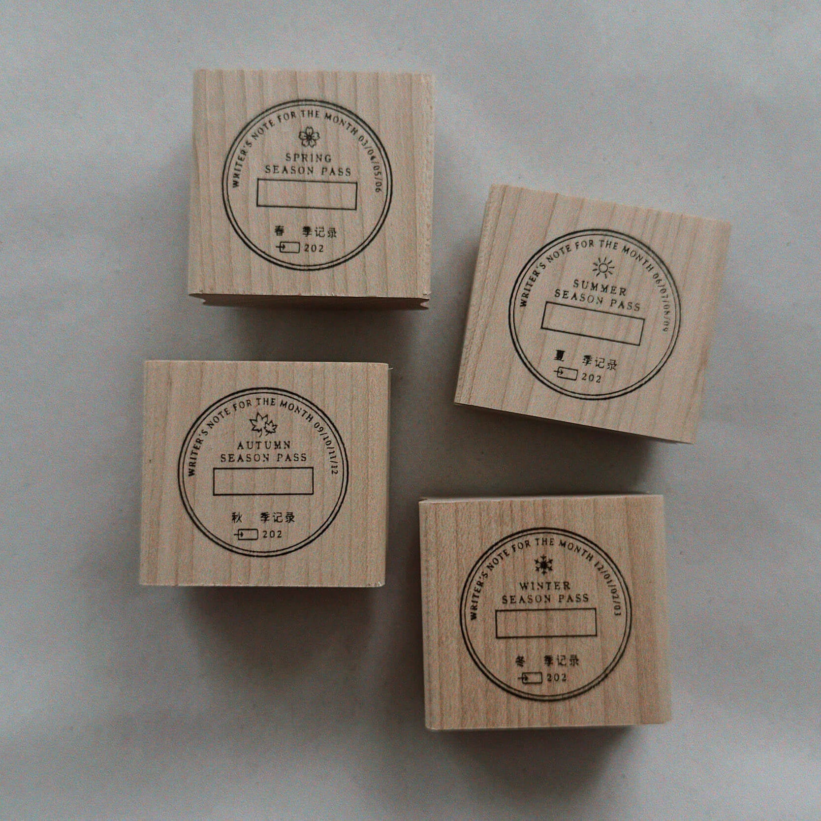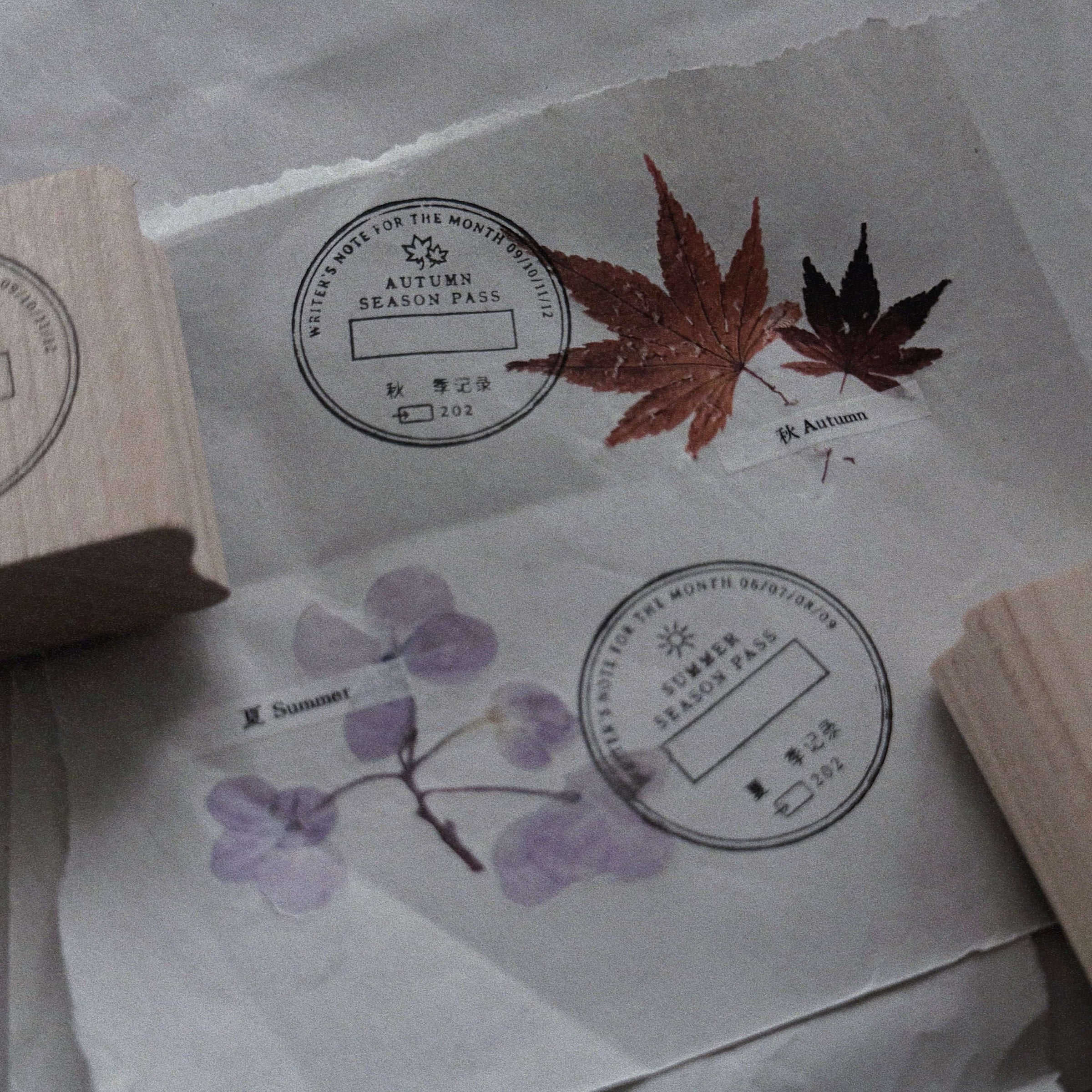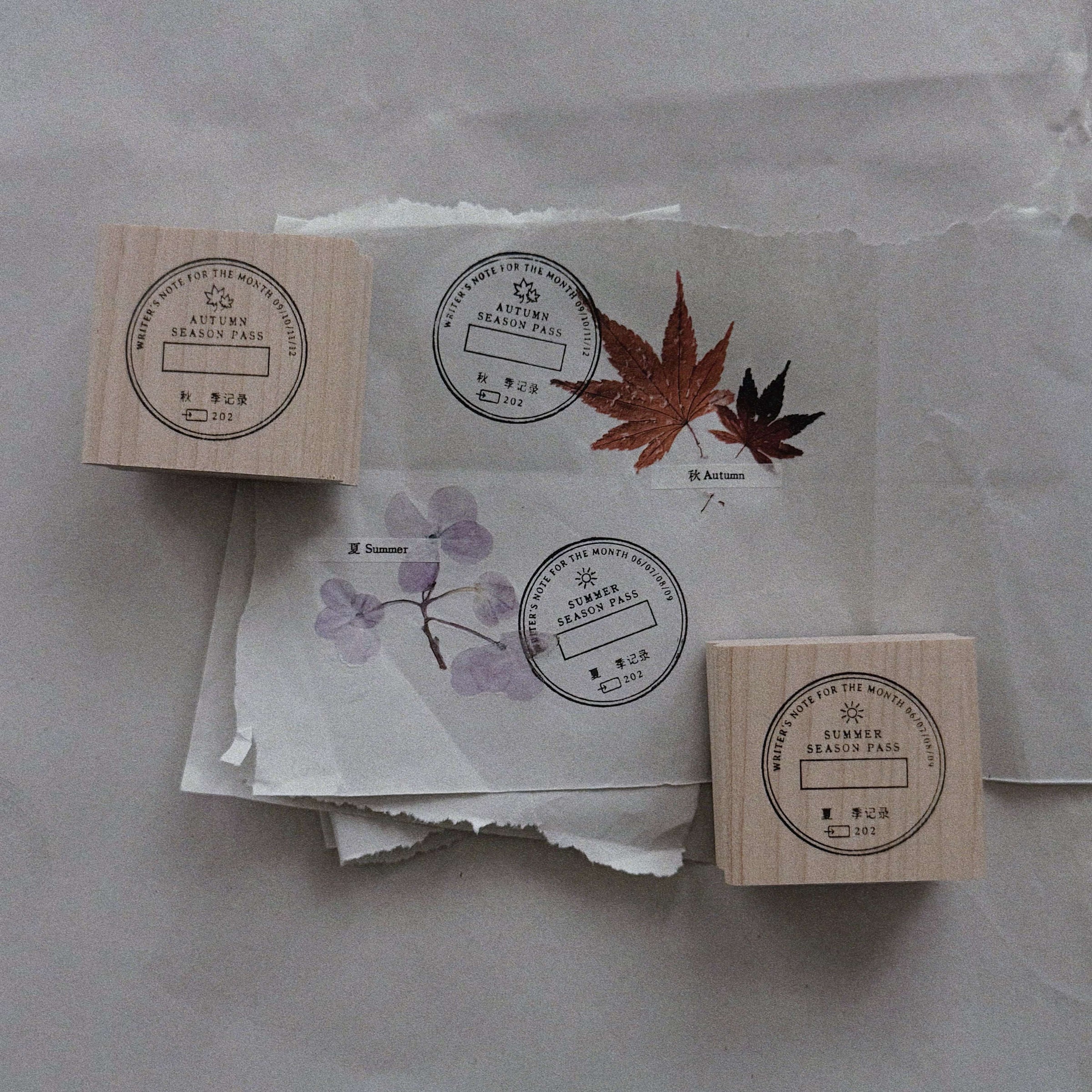 Each stamp represents one season. Use them to mark seasonal journal entries, memory pages, nature collections, slow projects, or creative archives. Layer them with pressed leaves, ephemera, photographs, or handwritten notes to create a sense of continuity, or let them stand alone, leaving only a subtle trace.