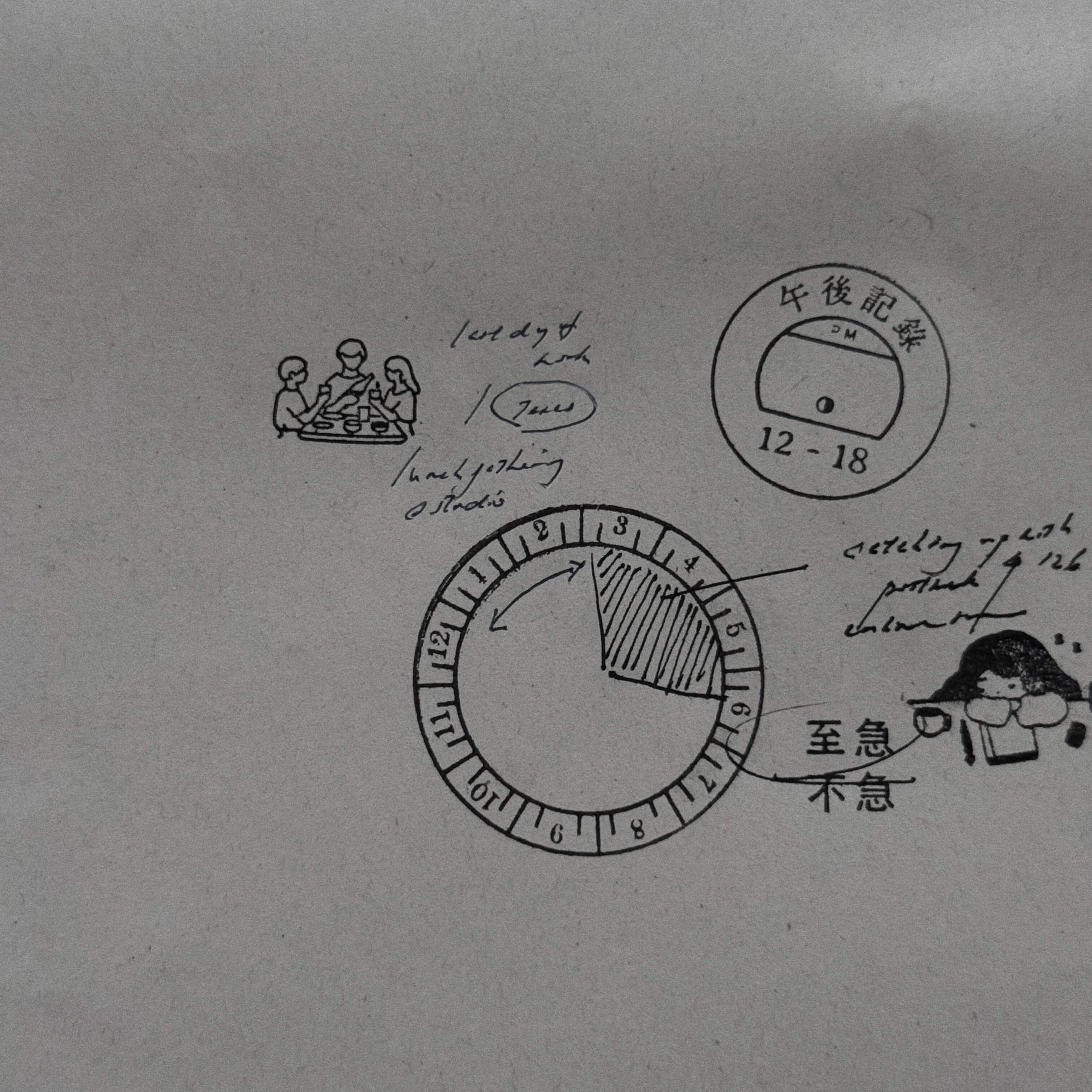 These time divisions reflect the rhythm of a day as understood by postal workflows, and are reinterpreted here as markers for everyday moments.