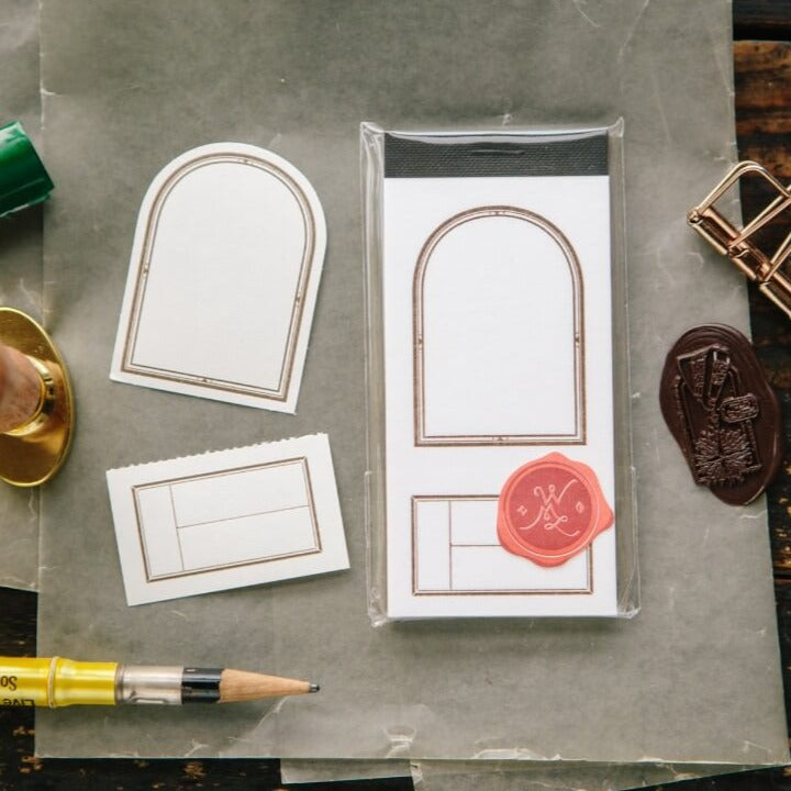 We always adore beautiful papers with beautiful outlines. Frame printed with arch window shape and small label, giving an impressive visual elegance to your journal pages.