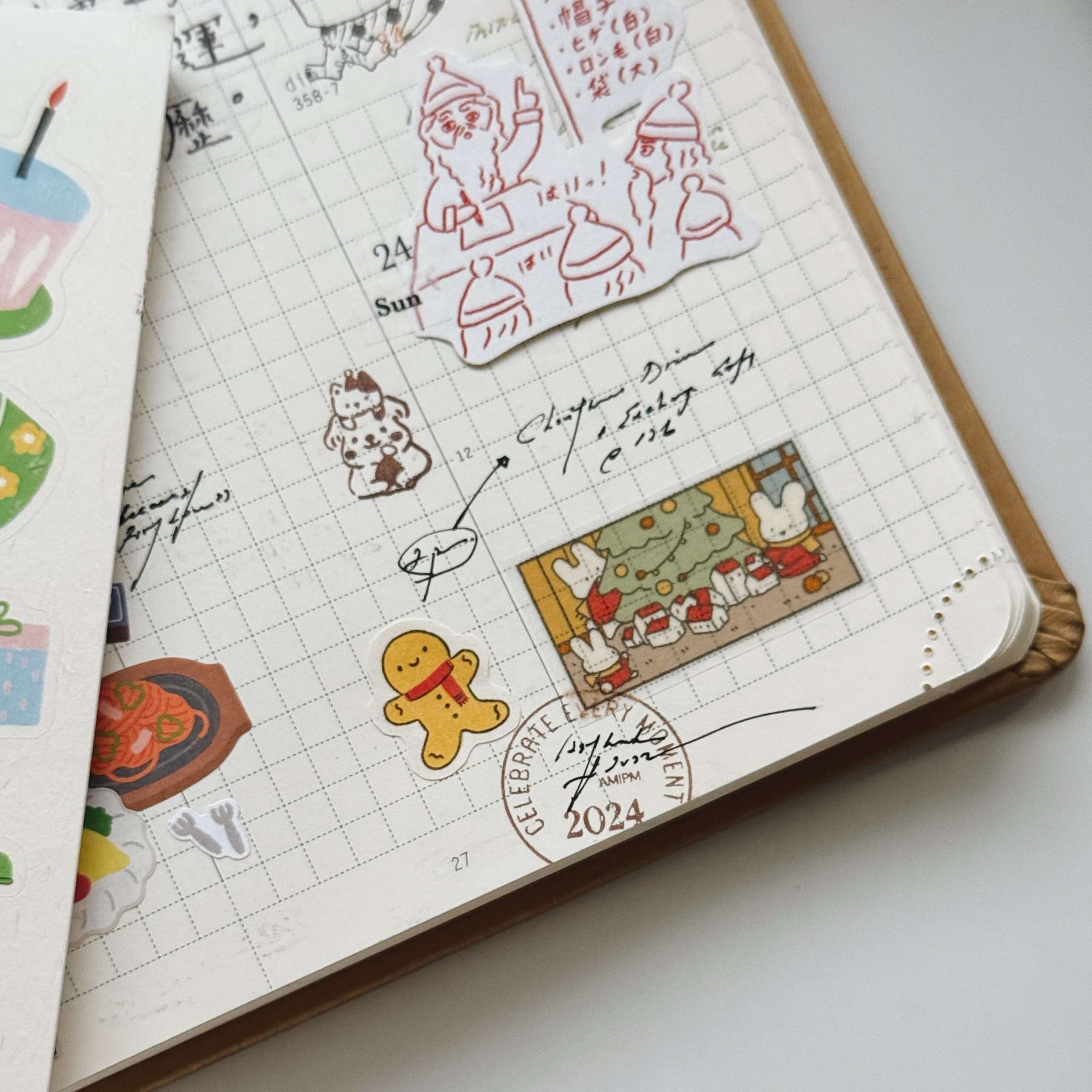 The accompanying sticker brings a touch of nostalgia, featuring elements inspired by the vibrant posters of our past events. With symbols of celebration, journaling, and stationery, this sticker encapsulates the essence of our creative community. Perfect for adding flair to your journal pages, embellishing your creative projects, or simply expressing your unique style.