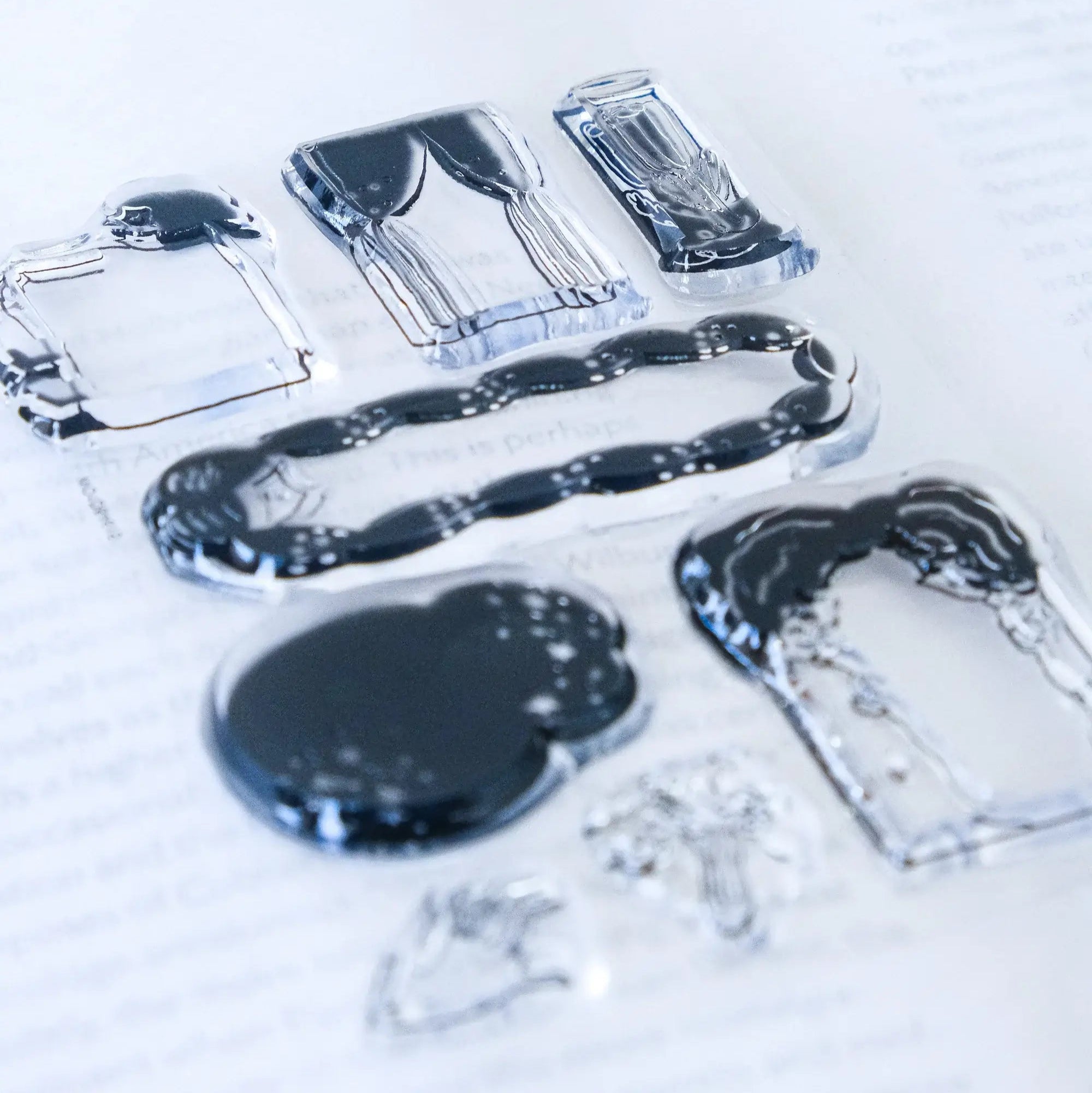 Designed to spark creativity, these stamps invite you to mix, layer, and compose your own visual tales. Their transparent design allows precise placement, making them perfect for journaling, card making, or creating layered prints with different ink colours.
