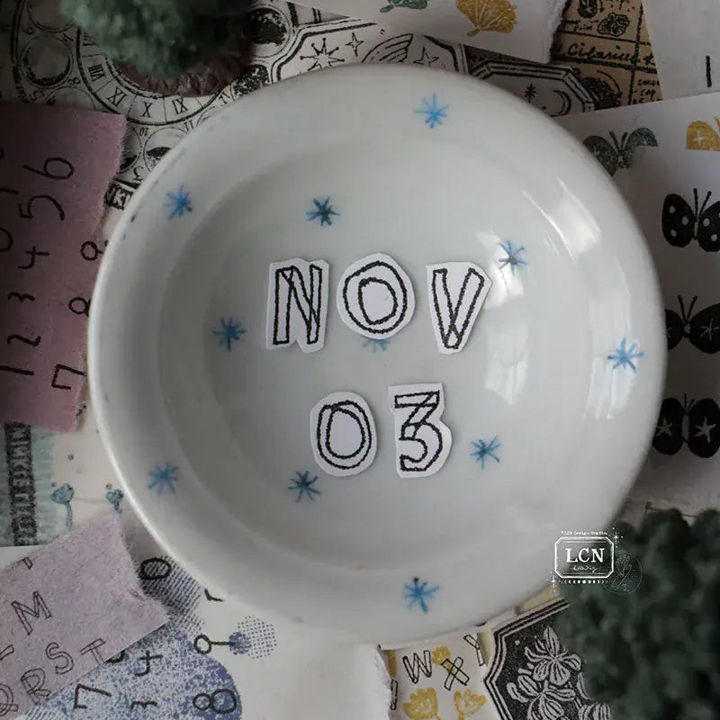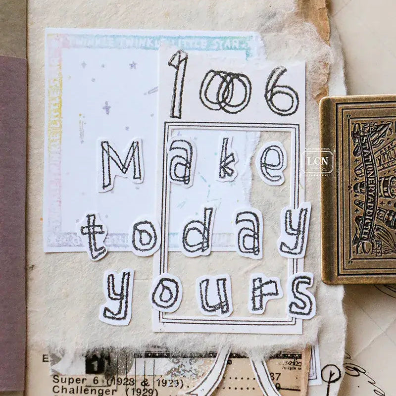 This clear stamp set features Lin Chia Ning’s signature hand-drawn alphabets and numbers, designed with an organic, slightly imperfect line quality that feels warm, playful, and personal. Each character carries its own rhythm, making it ideal for adding titles, dates, labels, or short words to your journal pages.