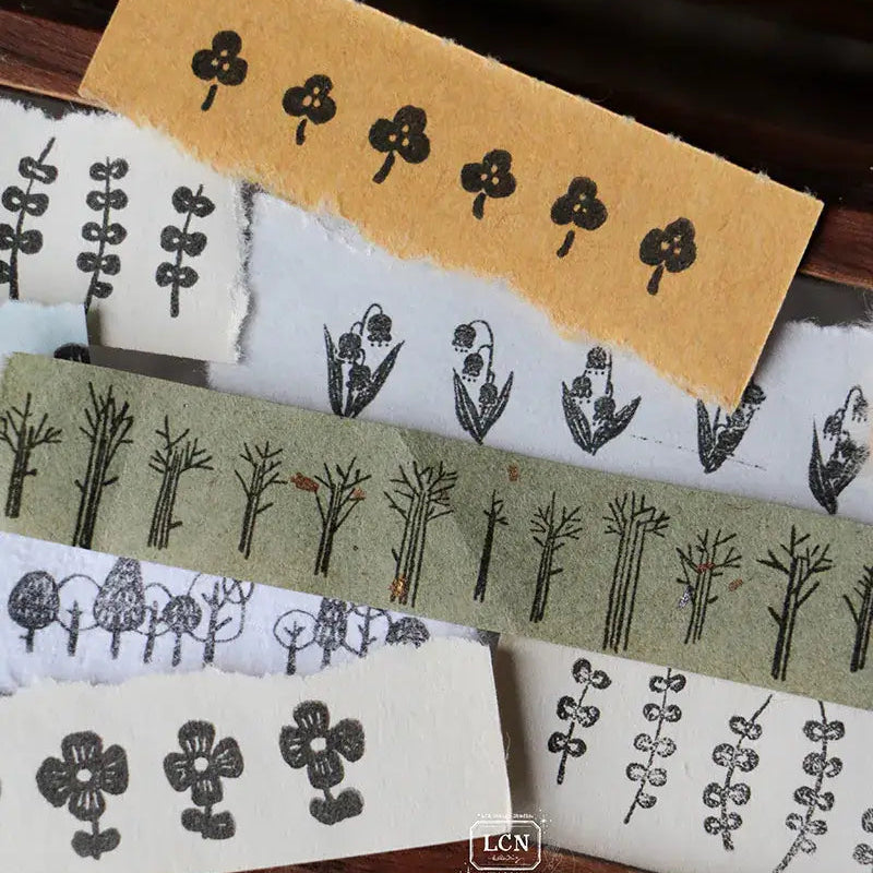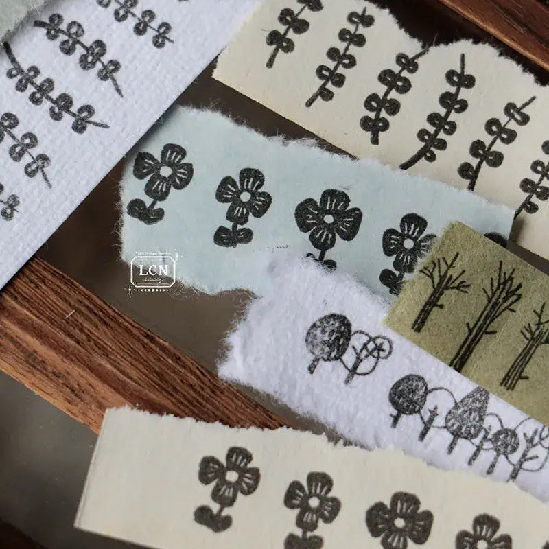 This clear stamp set features a collection of hand-drawn trees, leaves, and floral elements by Lin Chia Ning, arranged in gentle variations of shape, height, and rhythm. From tiny sprigs to rows of trees, each motif feels simple yet expressive, perfect for building quiet scenes or adding subtle structure to your pages.