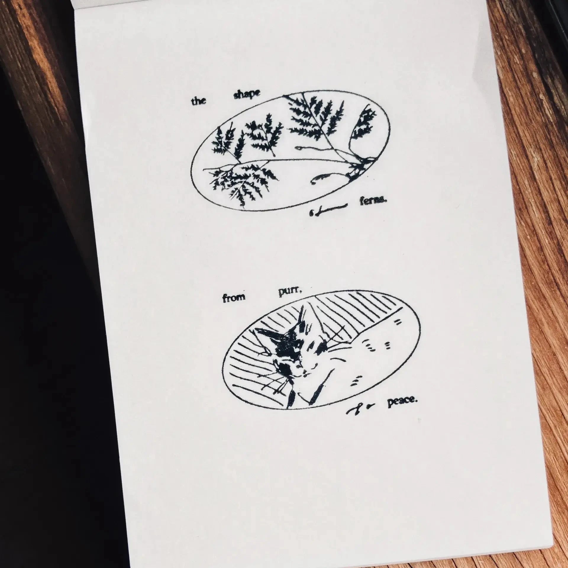 Delicate whiskers, soft paws, and the gentle curve of fern leaves. The sketches are adapted from My Favorite Things PET Tape, transforming its illustrated scenes into finely detailed stamps that capture both the warmth and serenity of everyday life. This charming design by somesortof.fern brings a quiet, magical touch to your pages, perfect for creating focal points in journals, letters, or craft projects.