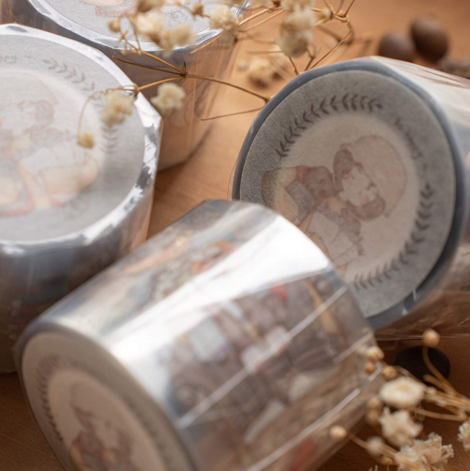 Lovely PET tape features original illustrations by shō Little Happiness. In a roll of tape, you'll discover signature girl character that embellished with whimsical details. Each design encapsulates gentle poses with a soft, contemplative expression, evokes a sense of calm and cozy scene.