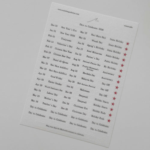 Minimalist Date Washi Sticker: Days to Celebrate 2026