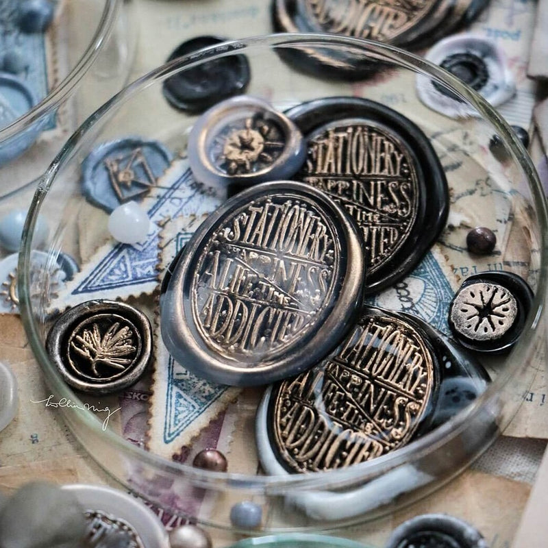 A special collection of wax seals engraved with beautiful designs by Taiwan designer, Lin Chia Ning, making them beautifully detailed wax seals.