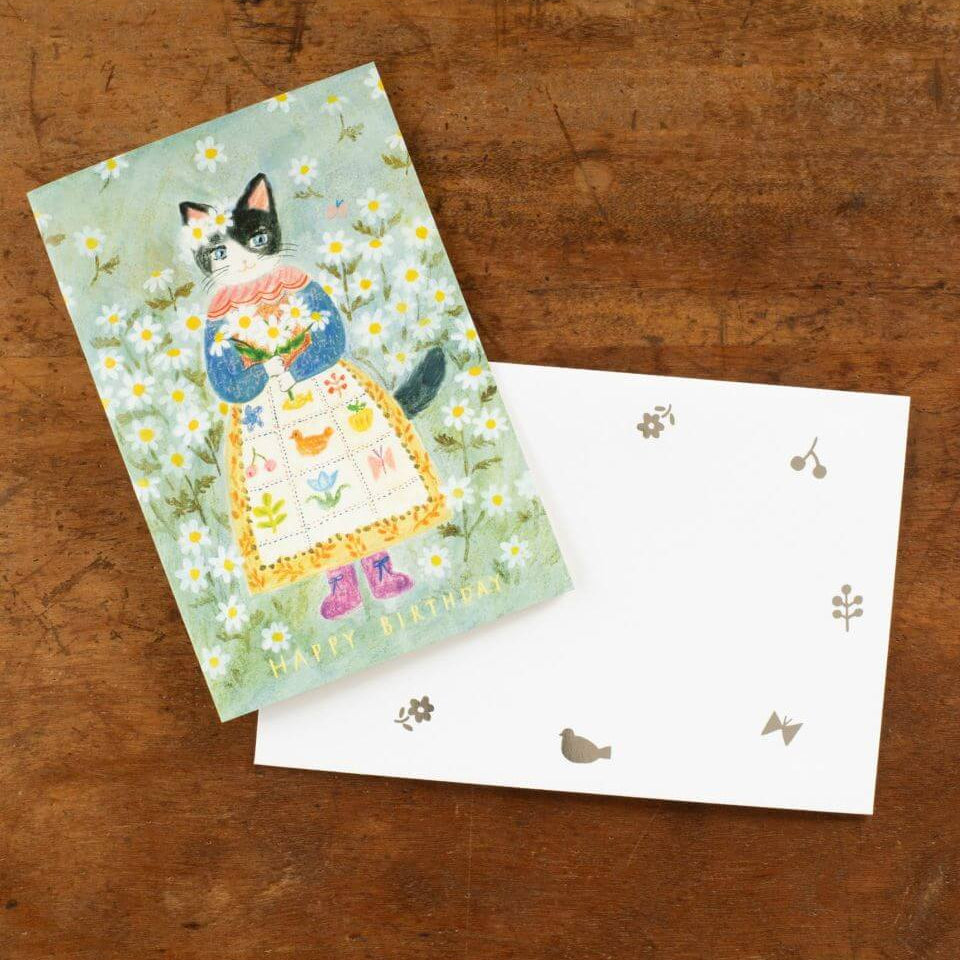 This delicate and serene birthday card showcases a sweet cat holding a delicate bouquet beautifully conveys warm, heartfelt wishes in an irresistibly cute way. The card is finished with elegant embossed detailing and comes paired with a shimmering silver-foil stamped envelope.