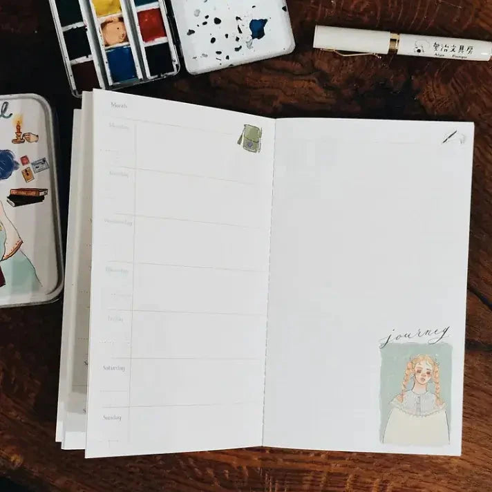 Inside, you’ll find sections for personal details, journaling periods, a contents page, and a beautifully illustrated closing page, providing both function and style.