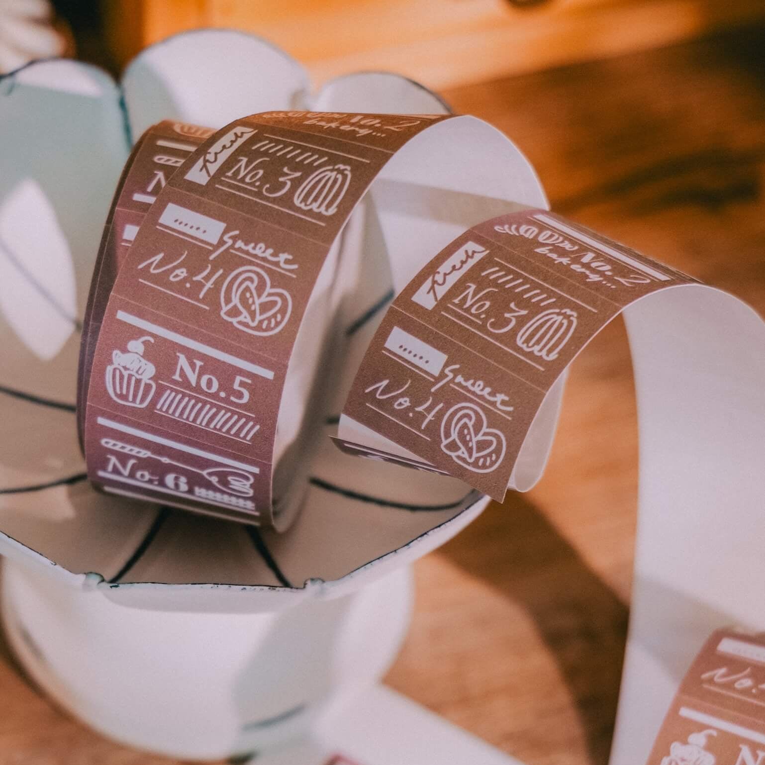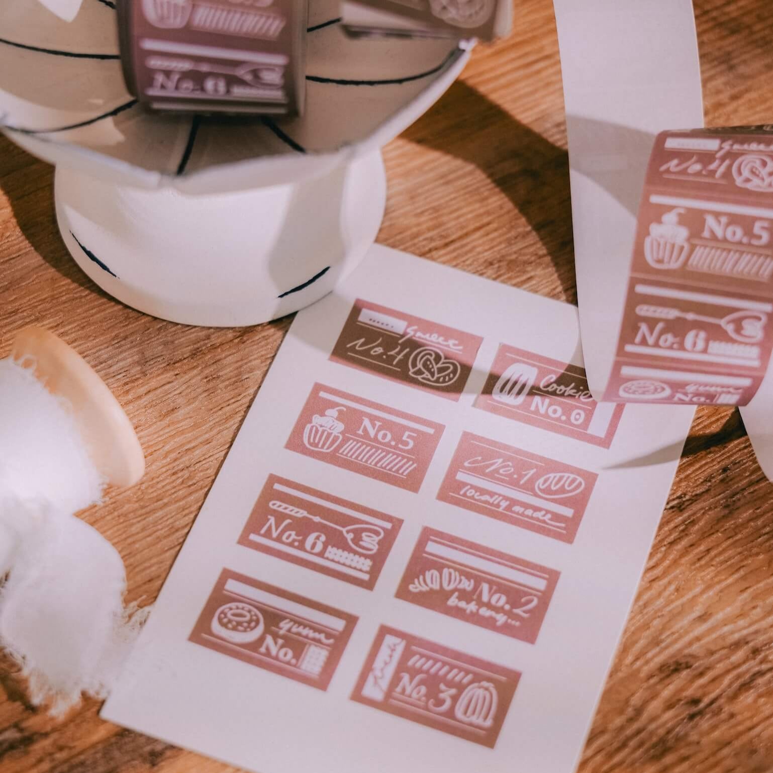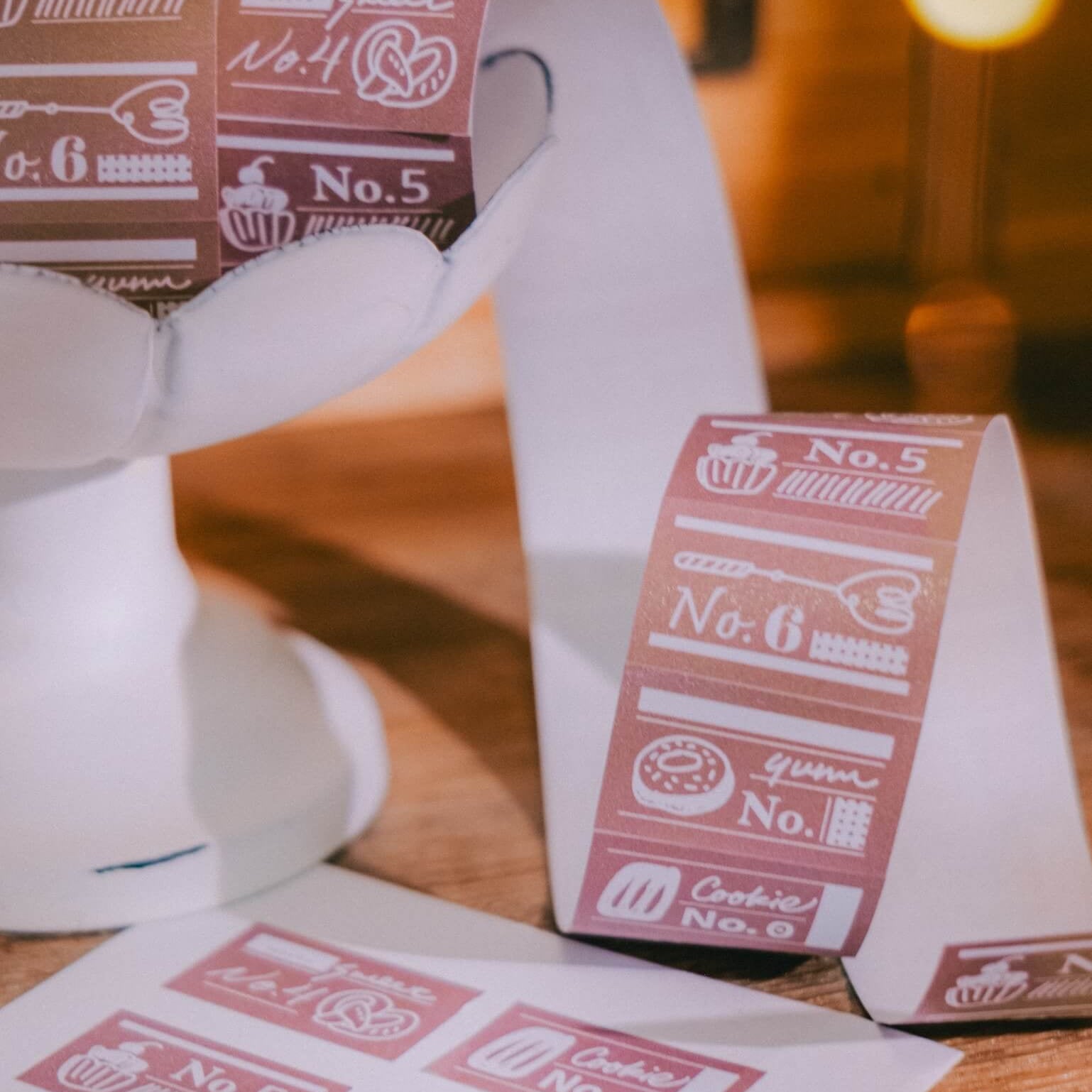 Enjoy this charming mini sticker roll, perfect for adding a dash of sweetness to your stationery collection. Each label features hand-drawn illustrations of desserts and treats. From pretzels and cupcakes to pudding and cutlery, all framed in nostalgic, price-tag style boxes.