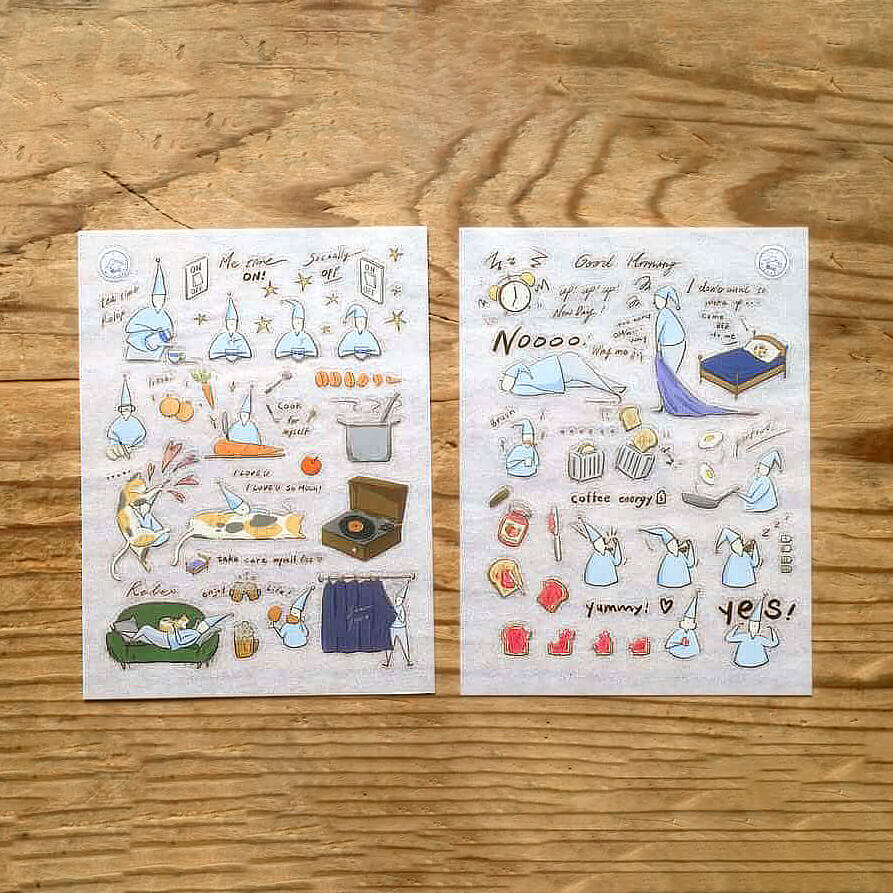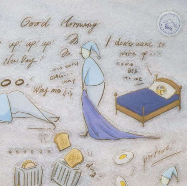These transfer stickers capture the rhythm of everyday life, from the soft haze of waking up to the comfort of night. Through delicate and expressive illustrations, the stickers reflect familiar daily rituals and small moments we often overlook.
