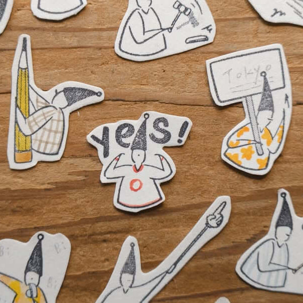 Whether they are shouting through a megaphone, raising a sign for attention, or proudly stamping “OK”, each design captures familiar moments from work, study, and daily life.