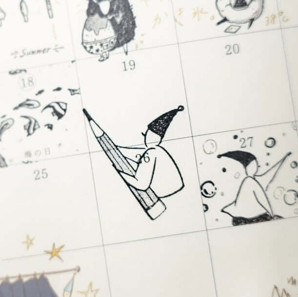[7] Powered by Caffeine Elf (25×50mm): A must-stamp for every coffee-powered day. The hat says it all: “More coffee, less sleepy”. An essential design for your daily planner!