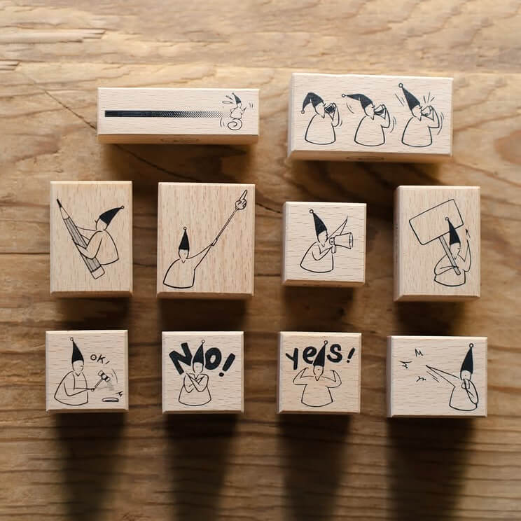 This stamp series features half body versions of the elves, each taking on an “official” duty. From making announcements and pointing out important notes to stamping approvals and tracking progress, these elves bring humour, rhythm, and character to everyday planning and journaling.