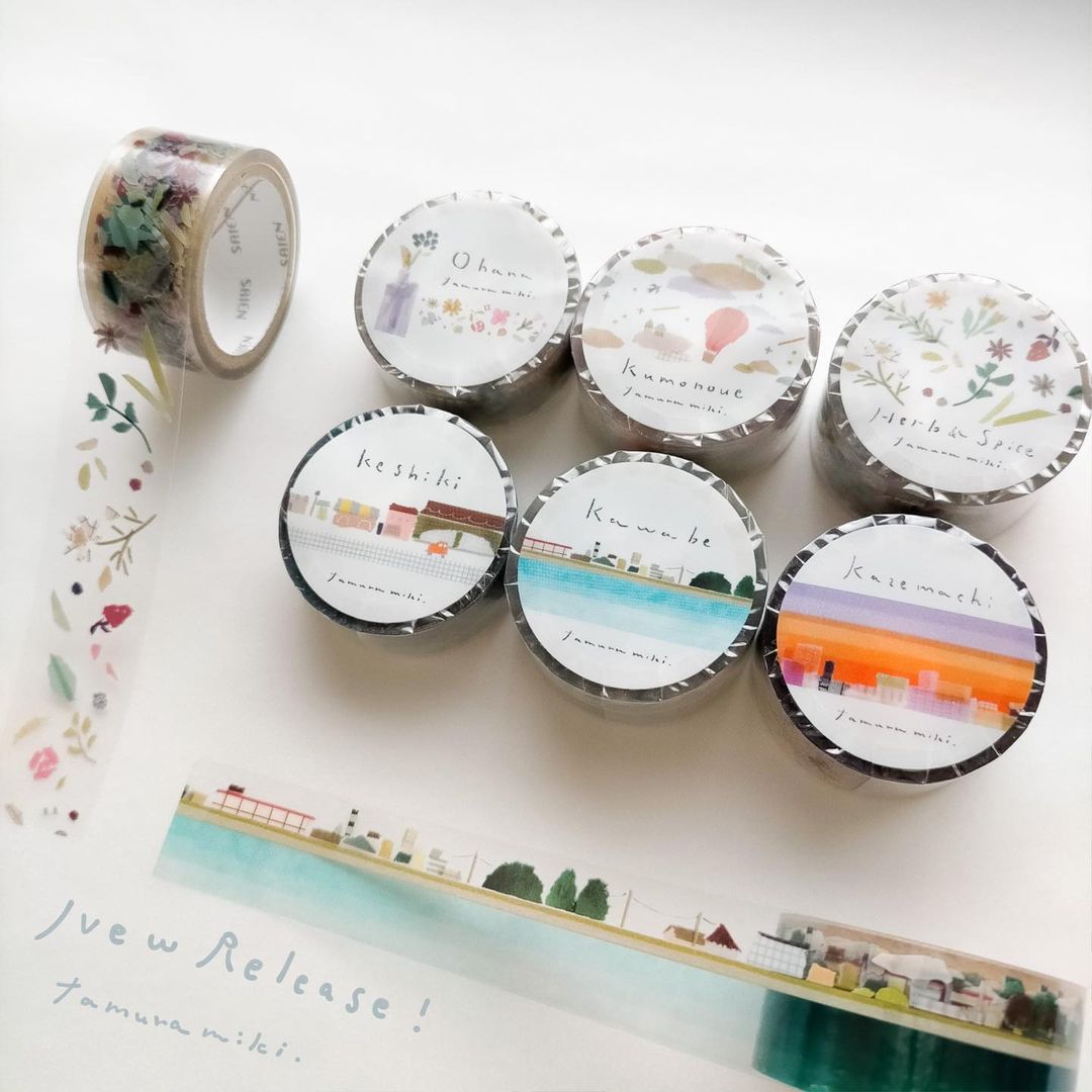 Each of these illustrations features collage artworks by Japanese washi tape collage artist, Miki Tamura, created using torn washi tapes.