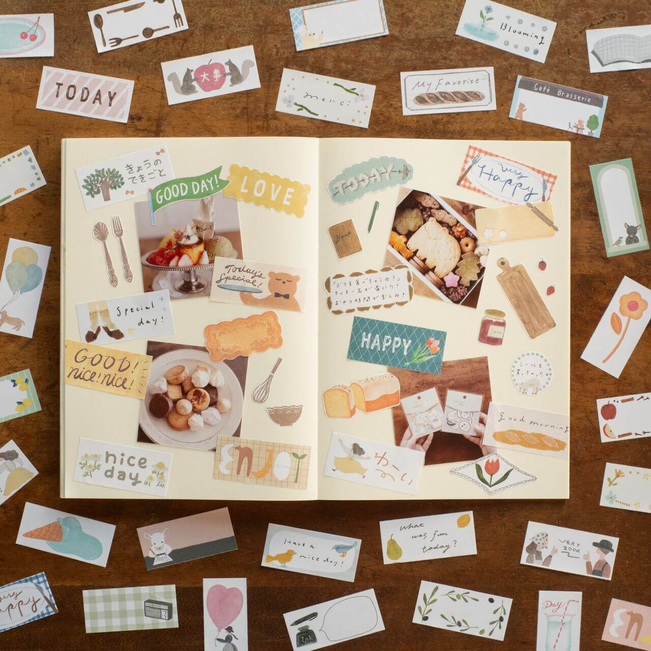 This “Waai” design features cheerful expressions from necktie’s whimsical world, including 「ジャジャ〜〜ン」(Jajaaaaan — a playful “Ta-da!”) and 「わーい」(Waai — a joyful “Yay!”), paired with their charming illustrations. Simply peel and stick to bring instant cheer and liveliness to your journal pages.