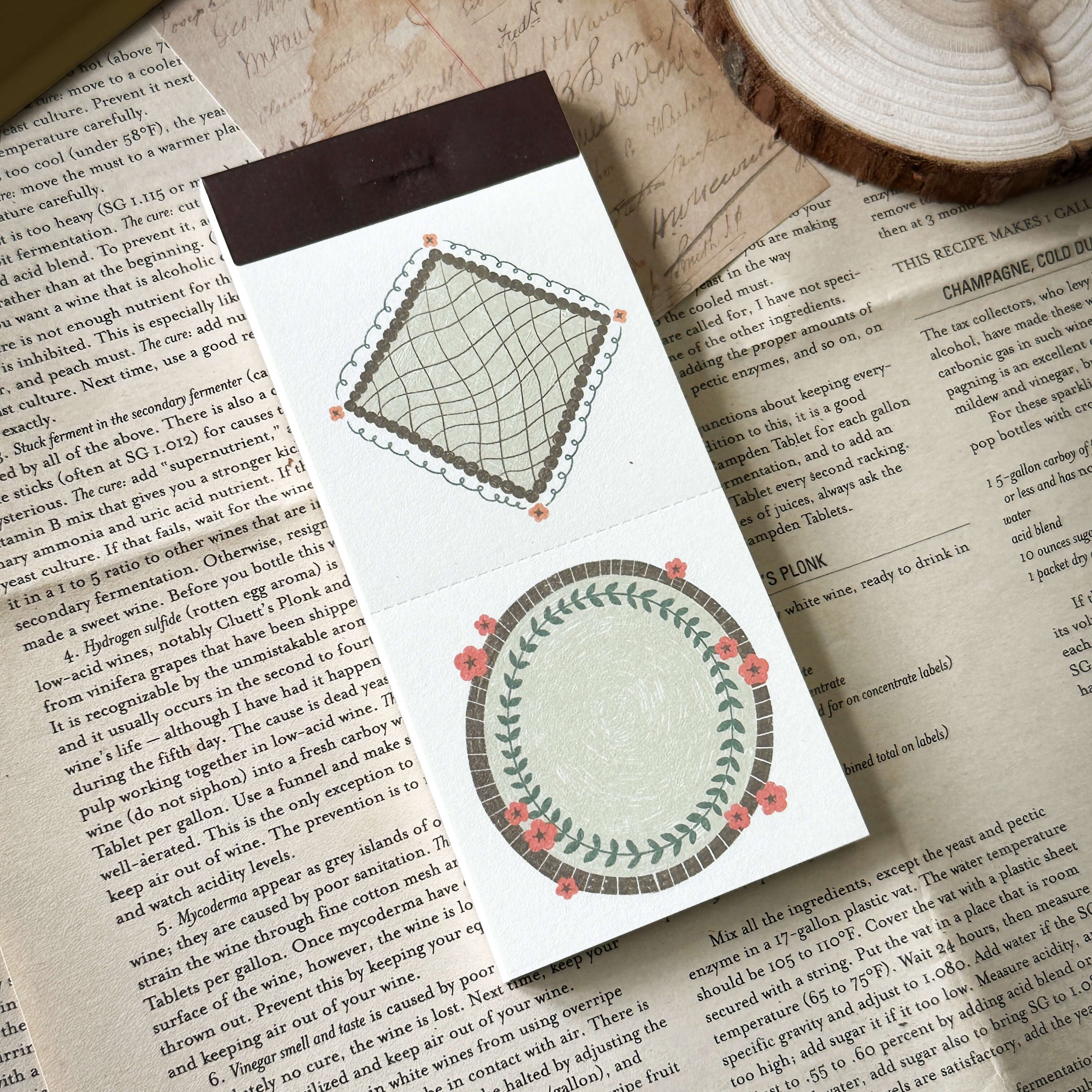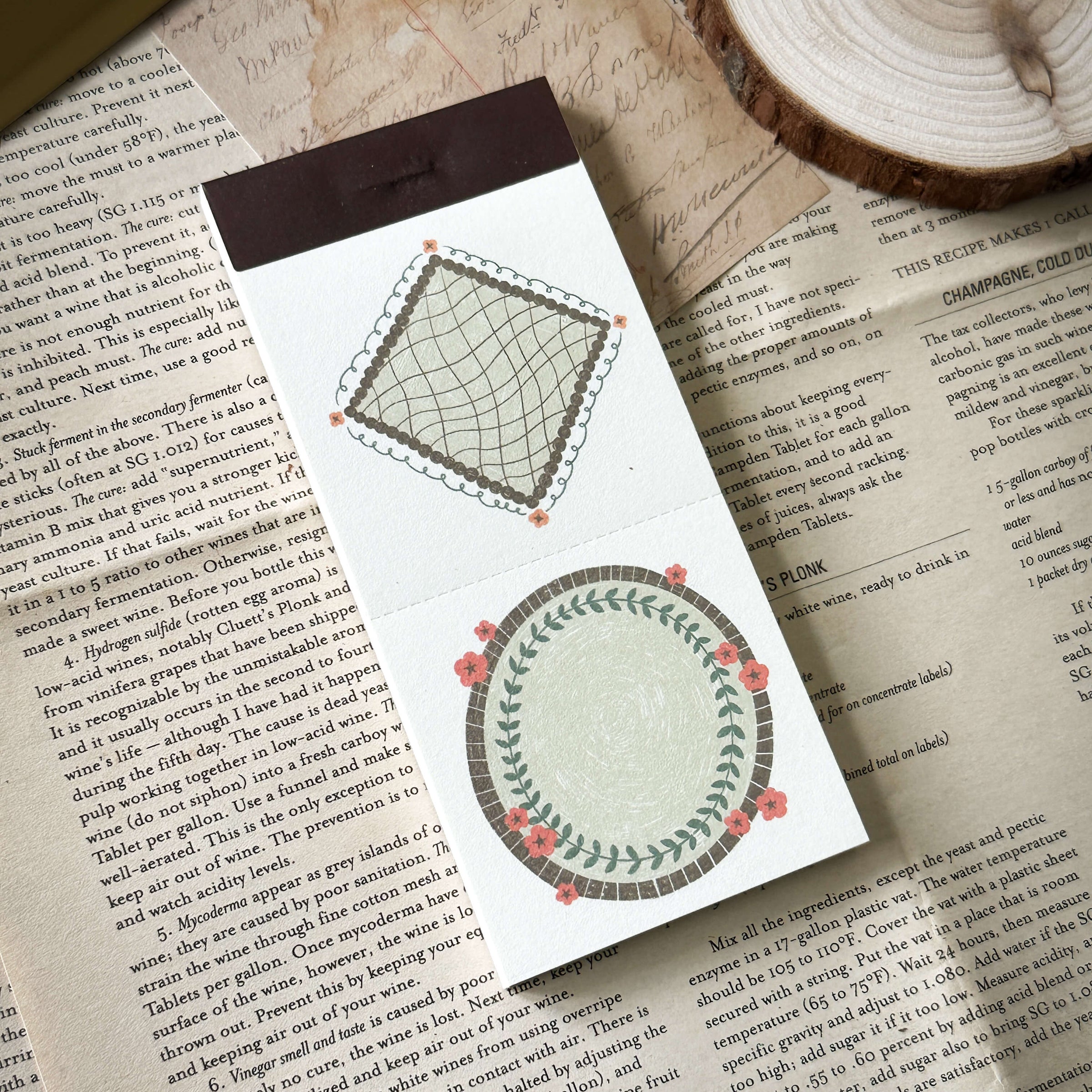 Softly illustrated with vintage-inspired frames in earthy tones, this memo pad is made for everyday journaling, note-taking, and gentle layering in your creative pages. Each design offers a beautiful balance between function and decoration. Perfect for writing small thoughts, dates, reminders, or little stories in your journal.