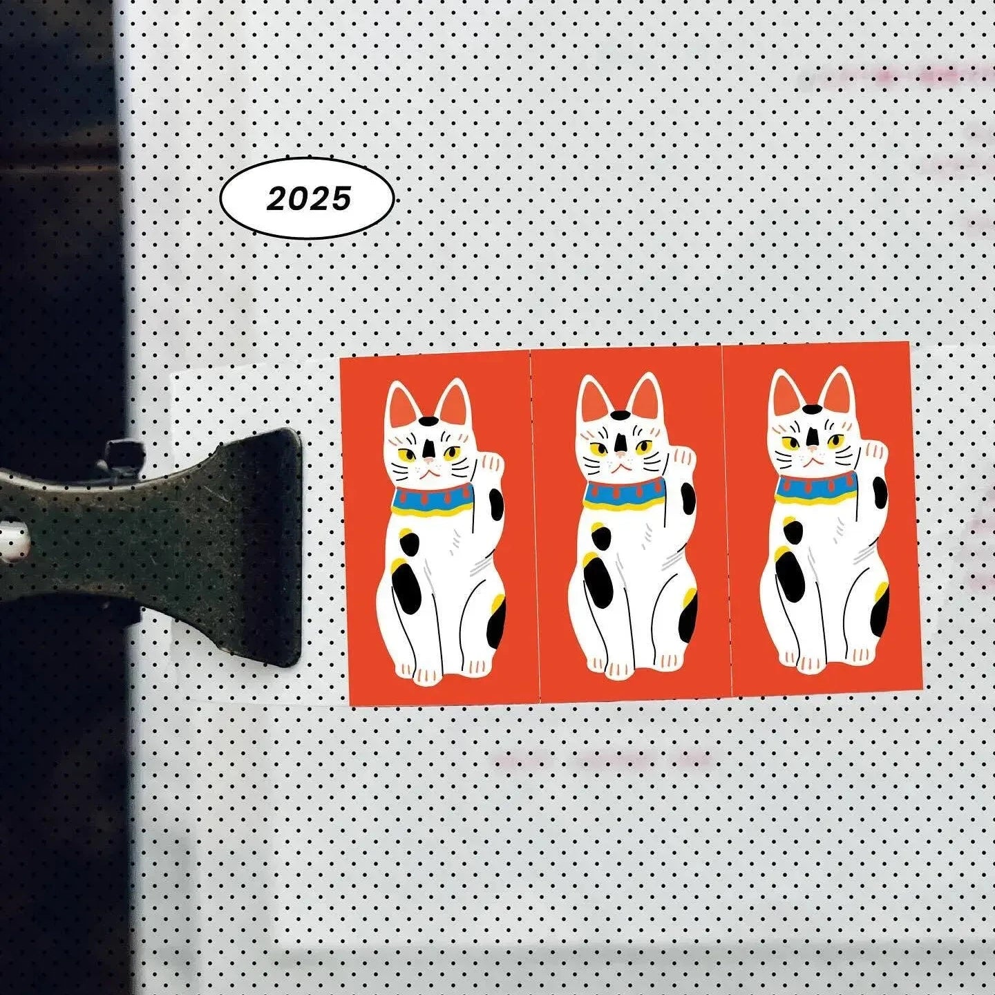 This charming label roll features the 招福貓 (the Lucky Cat) that raises its left paw to invite good fortune, and right paw to welcome prosperity. With its bright red accents and soft pink background, each tiny label carries a wish for blessings, luck, and a joyful year ahead.