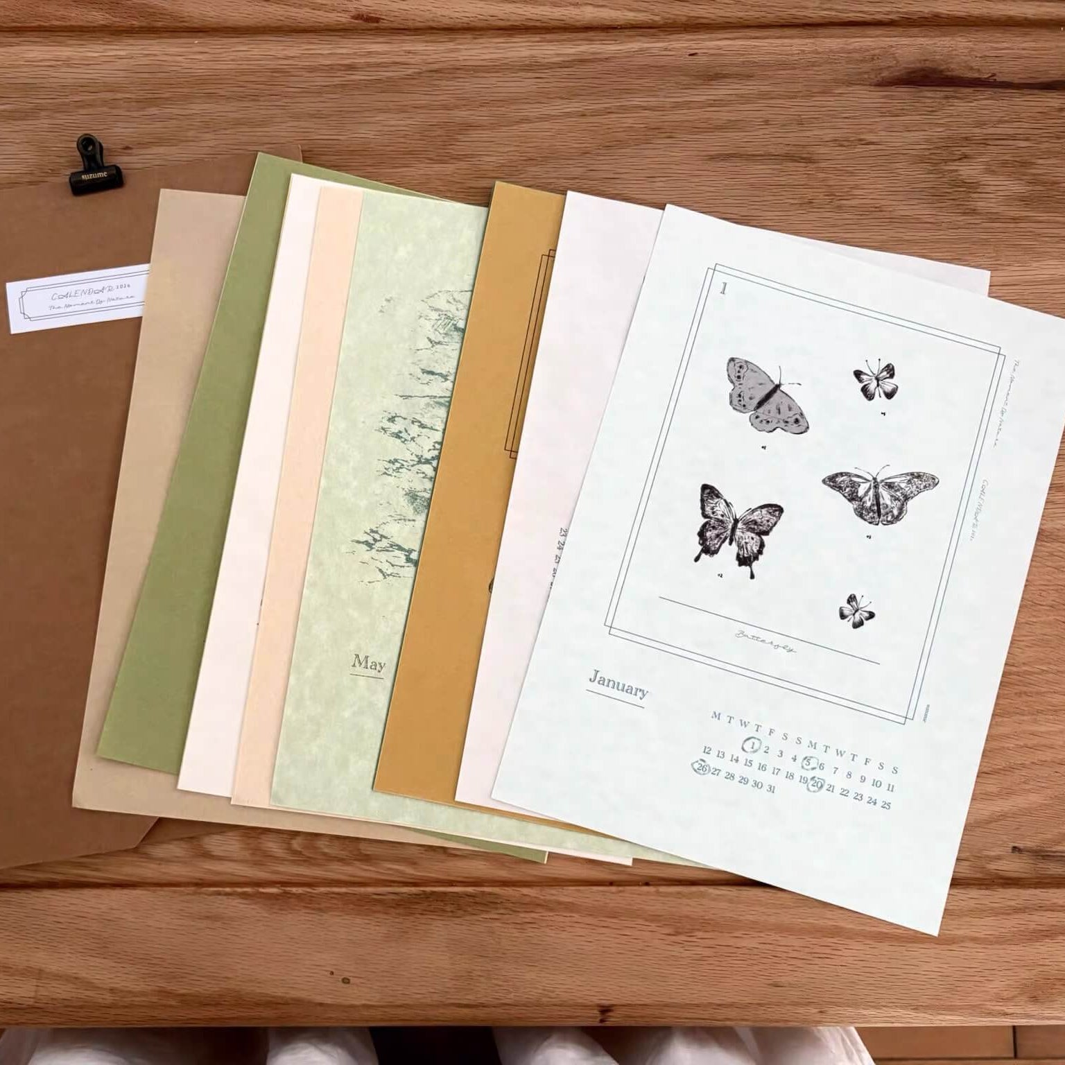 Printed on a mix of premium papers with varied textures and weights, each page carries its own character while remaining cohesive as a collection. More than a way to mark dates, this calendar is a gentle companion that celebrates everyday moments and the passage of time with warmth and intention.